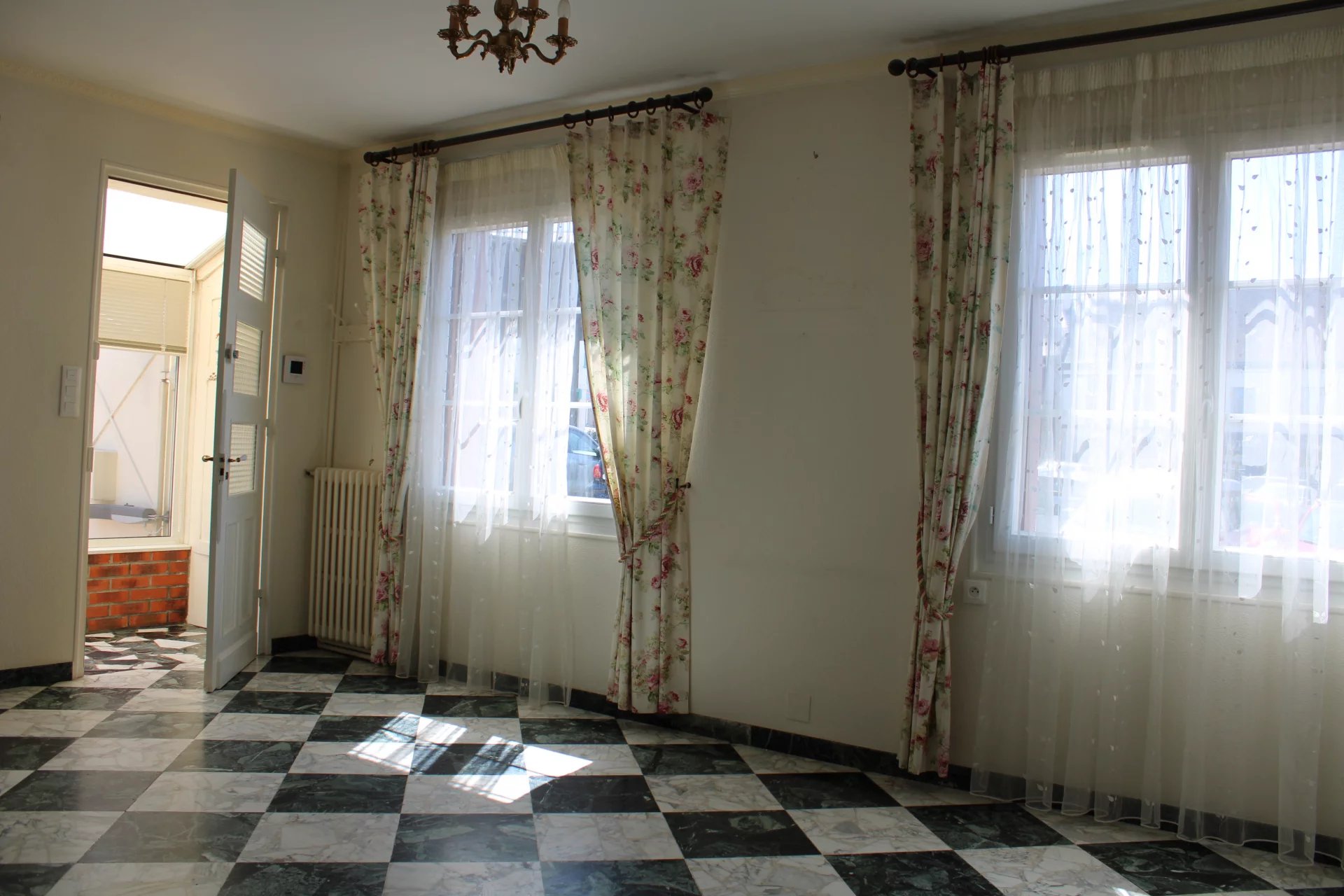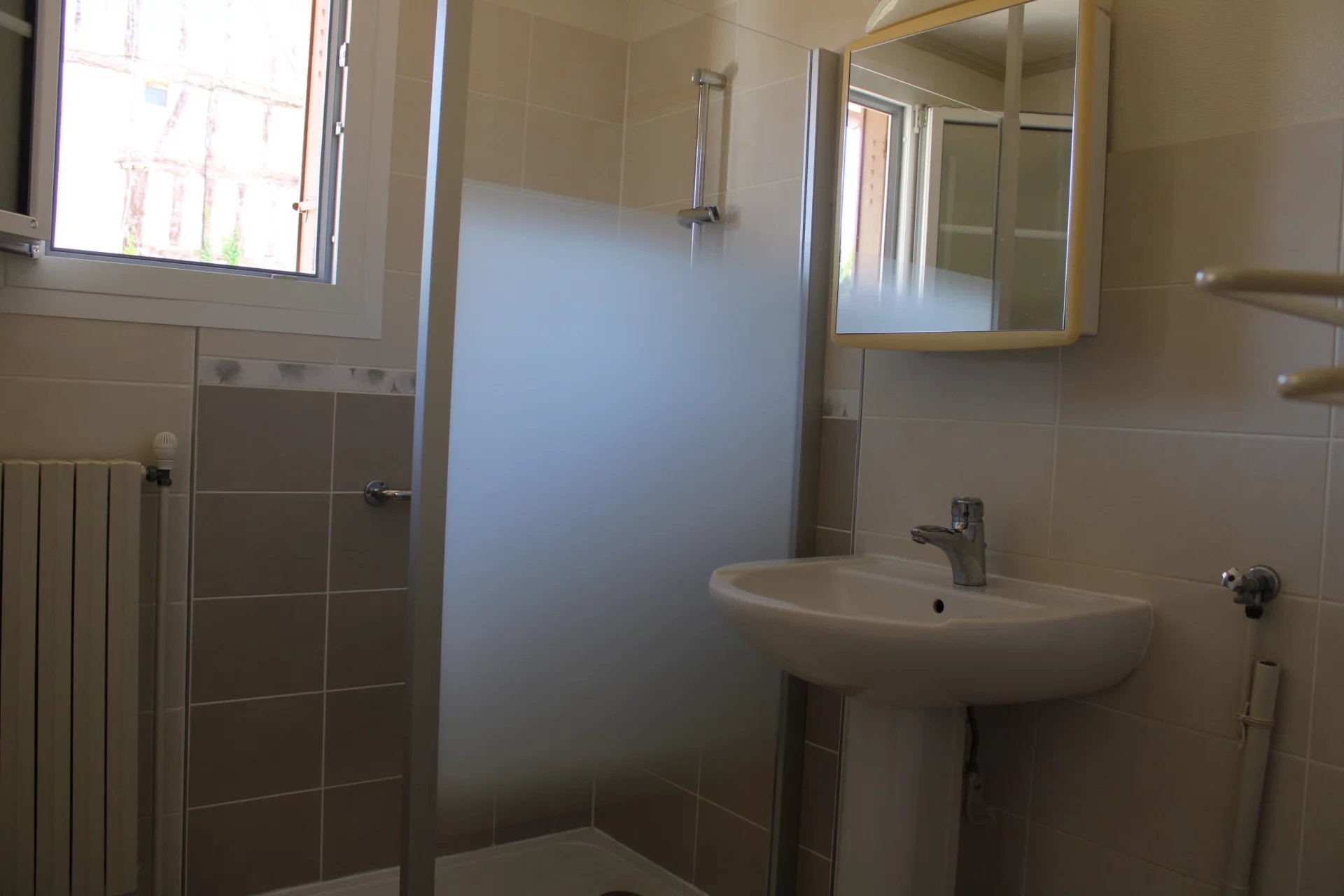 En plein centre ville avec garage et cour, comprenant : Sas d’entrée, séjour, cuisine aménagée et équipée, chambre, salle de douche, w.c indépendant.