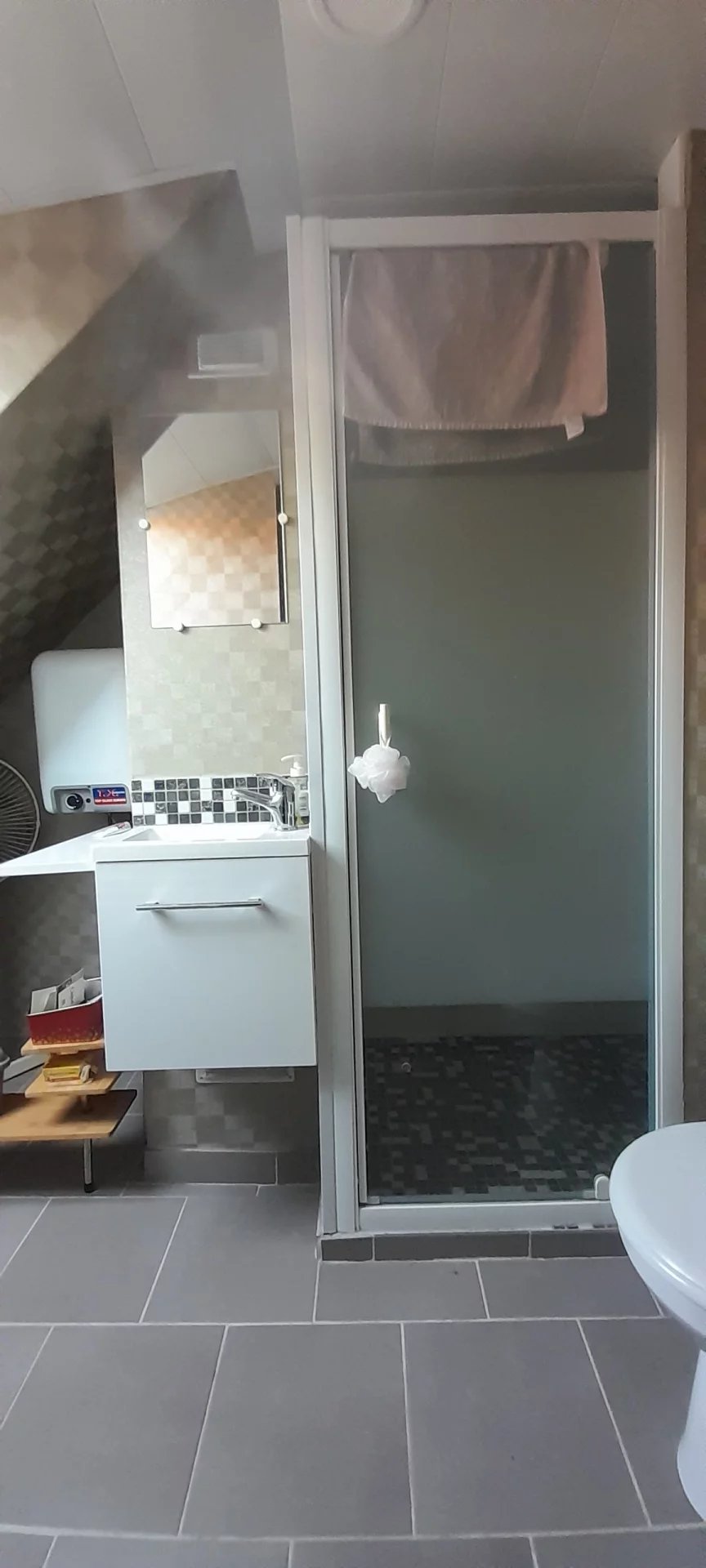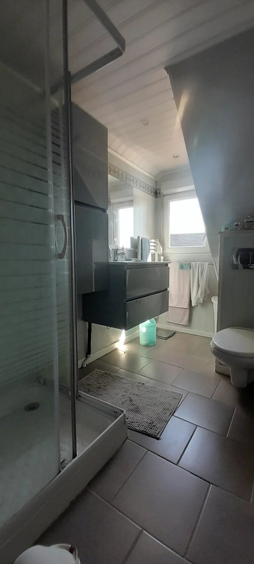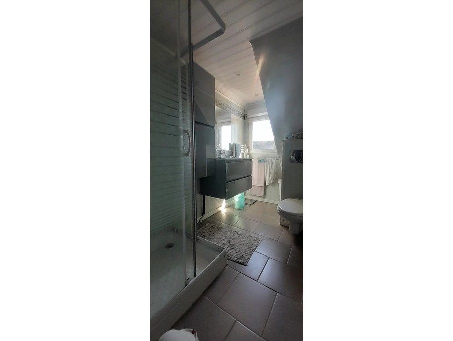 A l'étage: palier desservant suite parentale avec salle de douche et w.c, 2 chambres, salle de douche avec w.c.