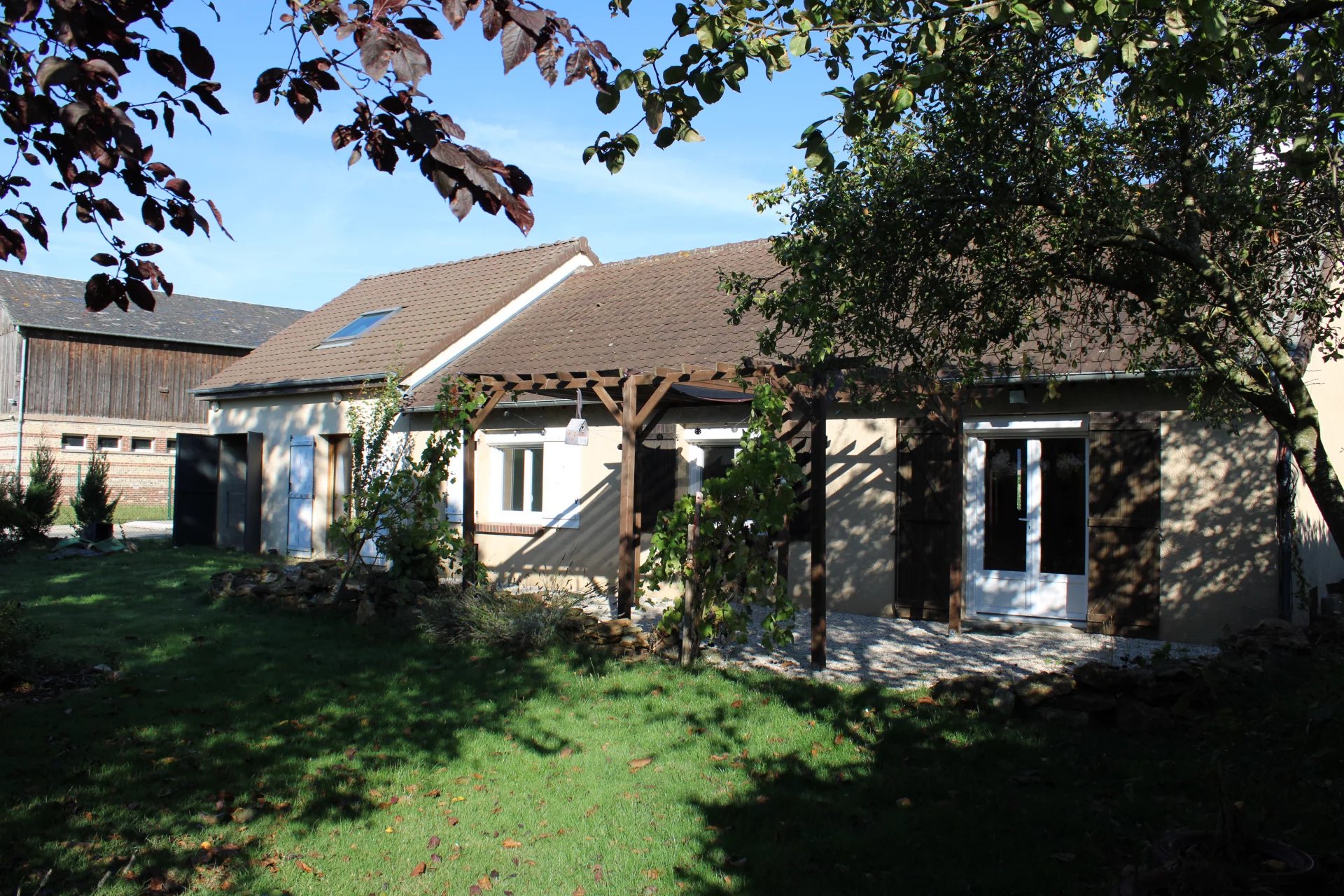 Nichée au cœur d'un village très prisé avec école primaire, accès rapide A13, découvrez cette charmante maison de plain-pied. Elle se compose d'une entrée accueillante qui mène à un séjour chaleureux agrémenté d'une cheminée avec insert, idéale pour les soirées d'hiver et une cuisine aménagée et équipée donnant sur une grande arrière-cuisine/buanderie.