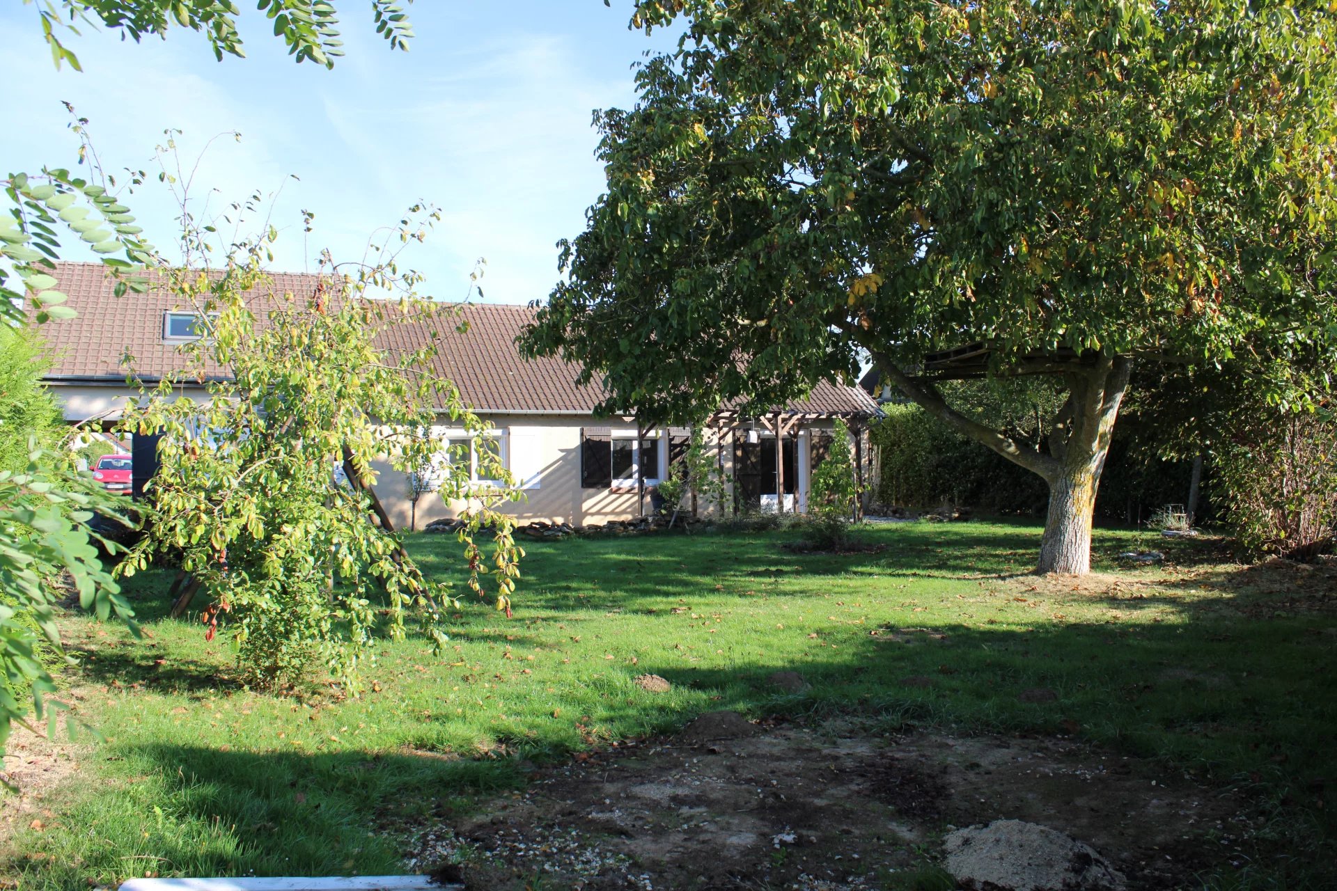 À l'extérieur, vous profiterez d'un garage et d'un terrain clos d'environ 1111 m² où petits et grands pourront s'épanouir en toute tranquillité.