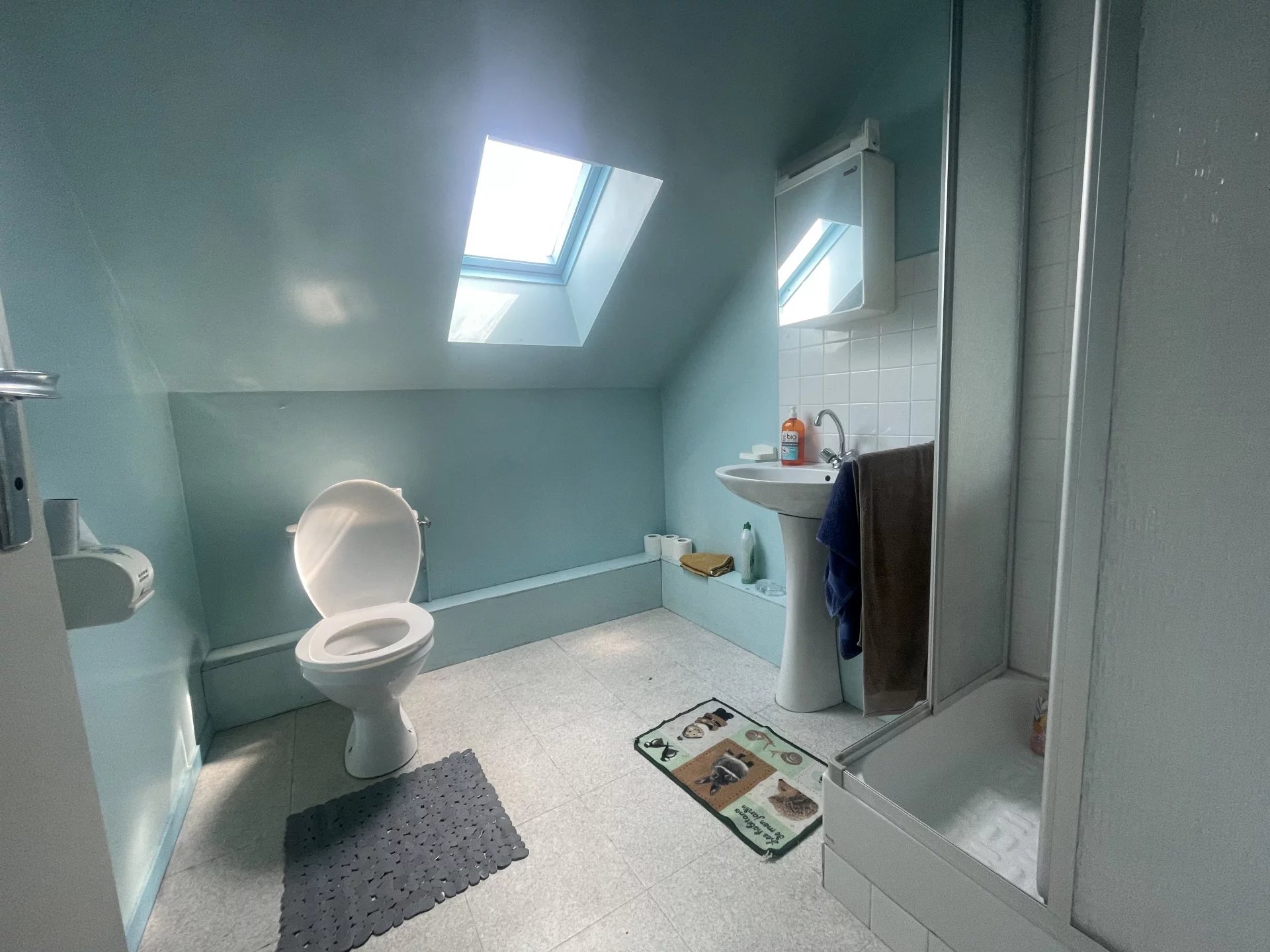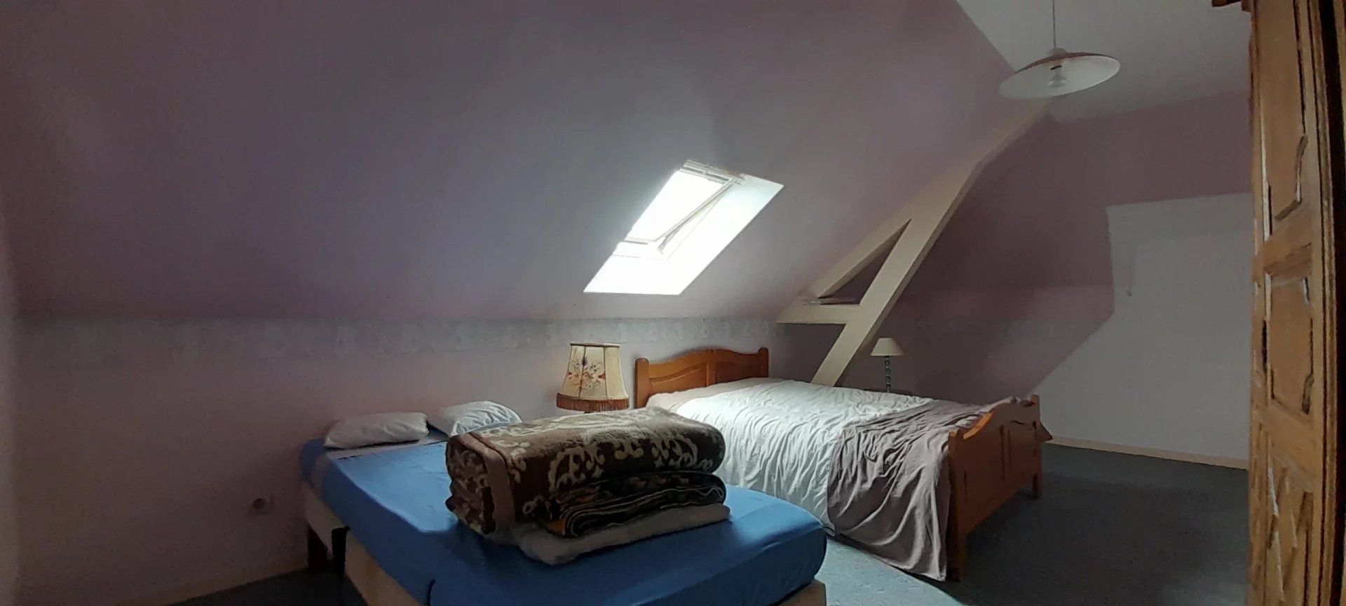 À l'étage, vous trouverez une pièce palière desservant deux chambres supplémentaires, une salle de douche avec w.c, ainsi qu'un grenier aménageable offrant un beau potentiel d'extension.
