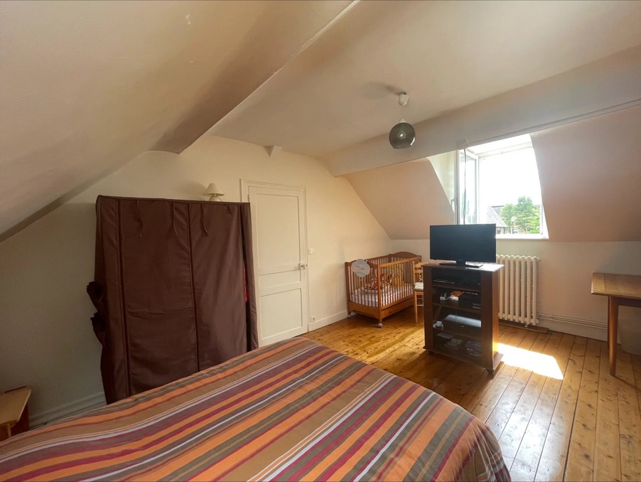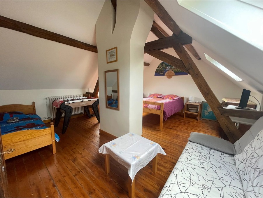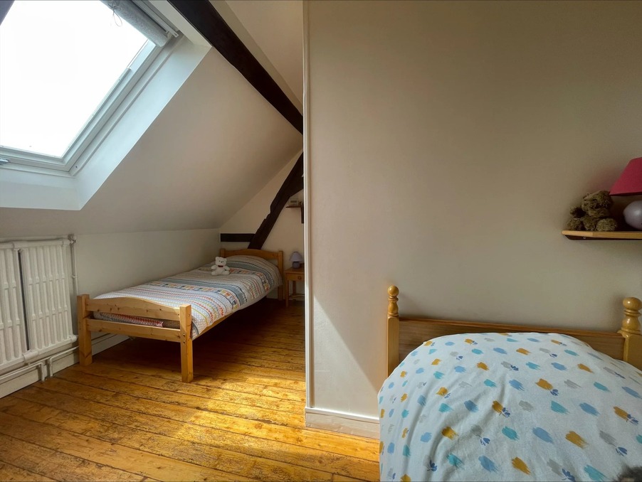 À l'étage, un palier dessert 3 chambres, dont une traversante offrant de belles perspectives et une flexibilité d'aménagement et un W.C. indépendant ajoute une touche de praticité.