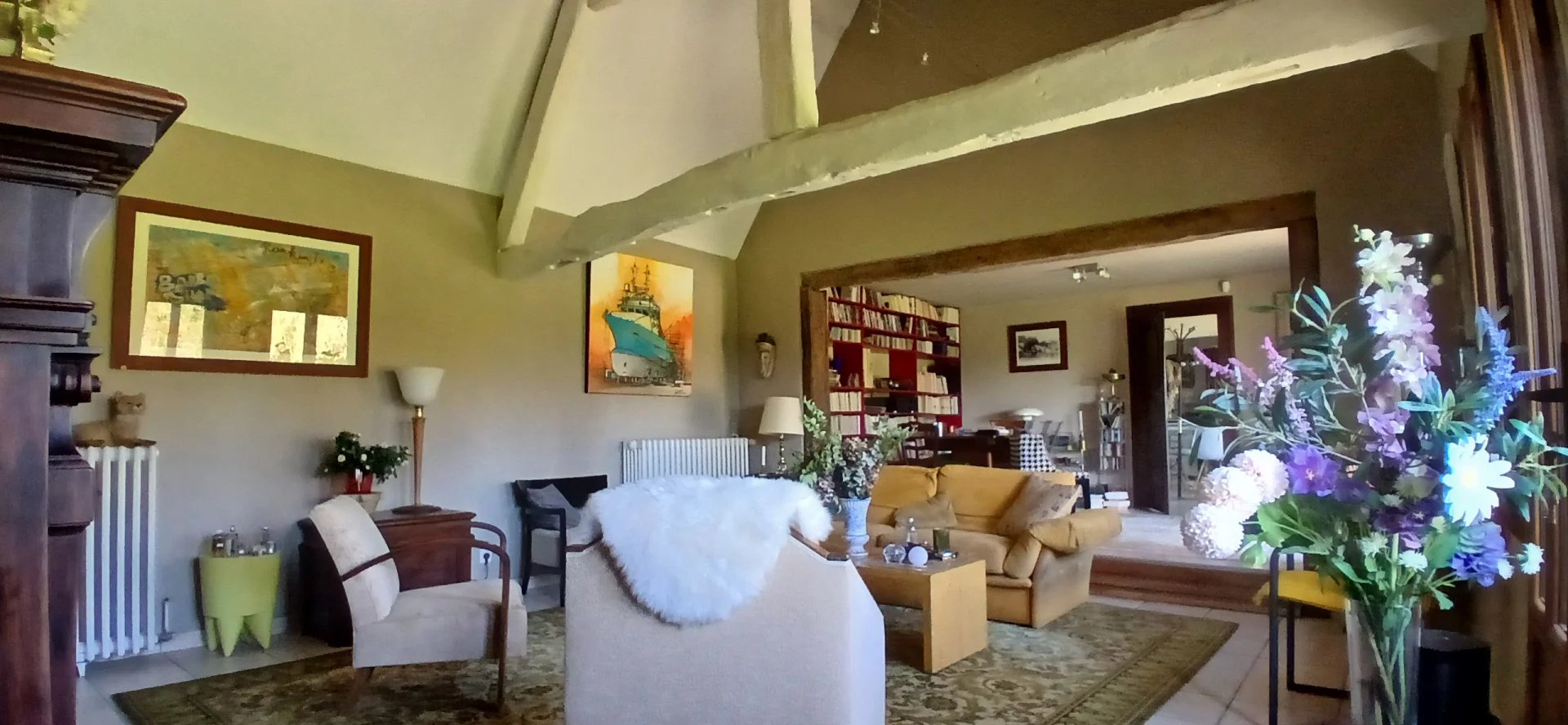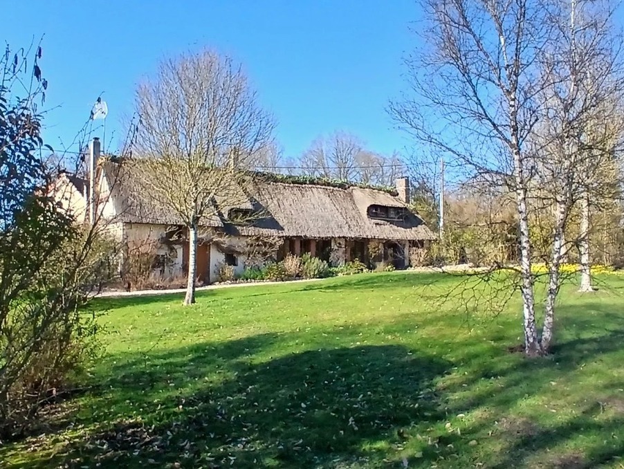 Laissez-vous séduire par le cachet incomparable de cette magnifique chaumière, véritable havre de paix niché sur un terrain arboré d'environ 1 779 m². Alliant authenticité des matériaux et confort actuel, elle offre un cadre de vie bucolique et privilégié.